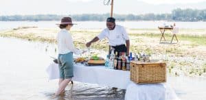 If you’ve been out on a morning game drive, you’ll return to camp mid-morning, though the exact time depends entirely on the day’s sightings and how the temperature is climbing. After a few hours out in the fresh air, brunch is always welcome, usually served buffet-style, with plenty of fresh salads, fruit, and something a little indulgent too. This might be the day that you have a special lunch in store, like a private lunch on the river with your feet in the water or a meal shared under the shade of the trees.