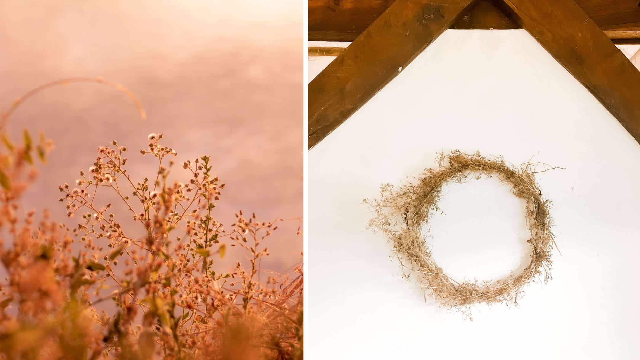 This one’s fun for the whole family. Head out to gather + forage dried grass, branches or leaves to create a festive wreath to be hung in your home.
