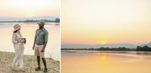 As the sun begins its final descent, lines are reeled in and the boat glides upstream once more. On a remote sandbank, two figures stand beside a perfectly laid table; a sundowner stop, conjured seemingly from thin air.