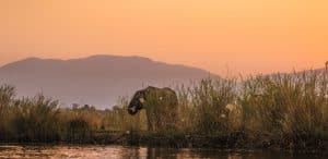Along the riverbank, life plays out in scenes of gentle beauty. A malachite kingfisher, no larger than your hand, sits quietly amongst the reeds, its feathers glowing like gemstones. A kudu steps lightly from the thicket to drink, alert and poised. Elephants appear at the water’s edge, moving in procession along the bank, calves guided carefully between the adults, their grey shapes mirrored in the still surface. Reflection only disturbed by a hippo popping it’s head up to survey the scene.
